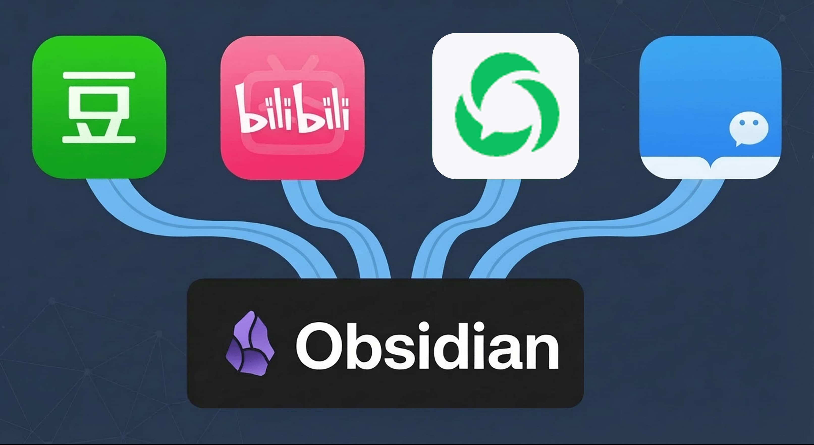 通过打通 Obsidian 与微信读书(obsidian-weread-plugin)、豆瓣(obsidian-douban)、Memos(Obsidian-Memos)、B 站(BibiGPT)、微信公众号等(笔记同步助手)的插件,我在尝试将之前分散在各个平台的笔记、书摘、影评、日常的所思所感集合在一处,通过 Obsidian 进行统一的管理。